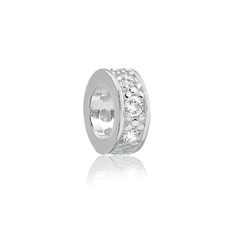 Berloque de Prata Separador com Zircônia – Um delicado separador em prata, adornado com zircônias, que acrescenta brilho e elegância à sua pulseira, criando um toque de sofisticação.