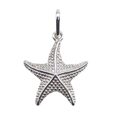 Pingente de prata em formato de estrela do mar, delicadamente trabalhado com detalhes intricados. Um acessório que traz o encanto do mar com elegância, perfeito para adicionar um toque de sofisticação ao seu estilo.