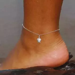 Tornozeleira de prata com uma delicada tartaruga marinha, simbolizando proteção e longevidade. Um acessório encantador, perfeito para amantes do mar!